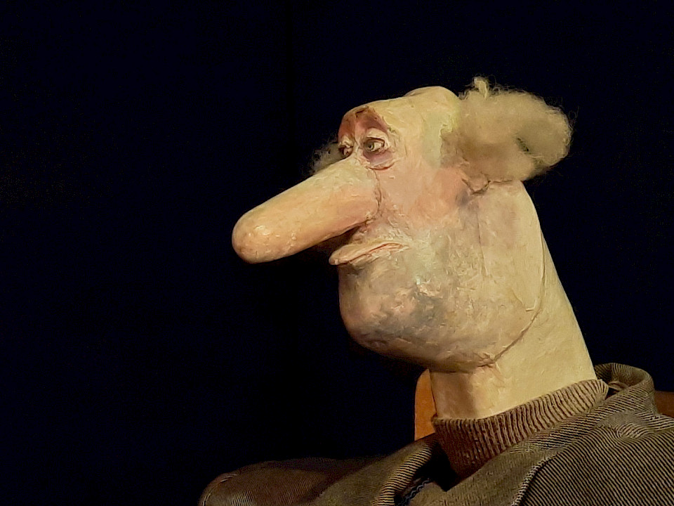 Und in unserem riesigen, roten Theatersessel. Ja, dieser Sessel hat es in sich. Nicht nur weil er so groß ist. Aus seinen Ohren, Lehnen und Holzknöpfen tauchen Figuren auf: Helden und Schurken, Tölpel und Schlauberger. Aus dem Erzählen wird eine Spiel. Ein Spiel mit der Phantasie alter Märchen und moderner Musik. Ein Spiel mit den unmöglichen Möglichkeiten des Figurentheaters.