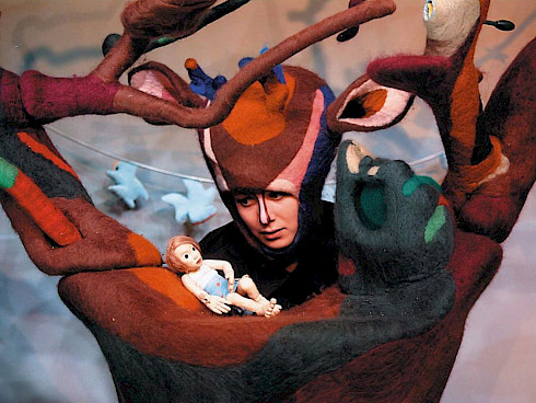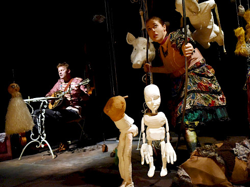 Flunker produktionen interpretieren das Grimmsche Märchen auf eine neue und eigenwillige Weise. In einer Mischung aus Schauspiel und Puppenspiel schlüpft die Spielerin in die Rolle eines Rehs das gemeinsam mit den Zuschauern gespannt und irritiert dem Weg des Mädchens folgt.