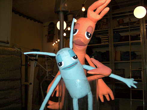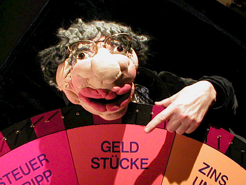 Ein Handpuppenspiel in Paraventbühne mit großem kaiserlichen Kleiderschrank und einem Webstuhl.