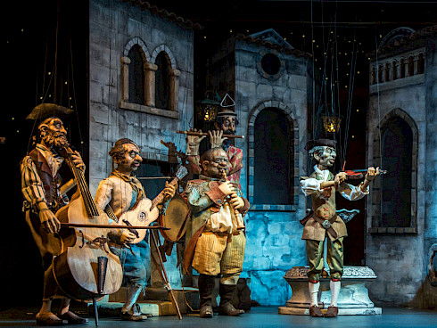 Die Lindauer Marionettenoper benötigte drei Jahre Vorbereitungszeit für die Produktion. Allein die Herstellung der 50 Figuren dauerte eineinhalb Jahre. Eine große Herausforderung bestand darin den Charme der 30er Jahre, aber auch die alpenländische Gemütlichkeit auf der Bühne zu vereinen, und den Charakter einer Revue einzufangen. Die unterschiedlichen Stimmungen wurden durch viele Tanzeinlagen herausgearbeitet. So dürfen nicht nur die Kellner ihre Beine strecken, auch Gänse, Kühe und sogar Regenschirme haben ein Tänzchen bekommen.