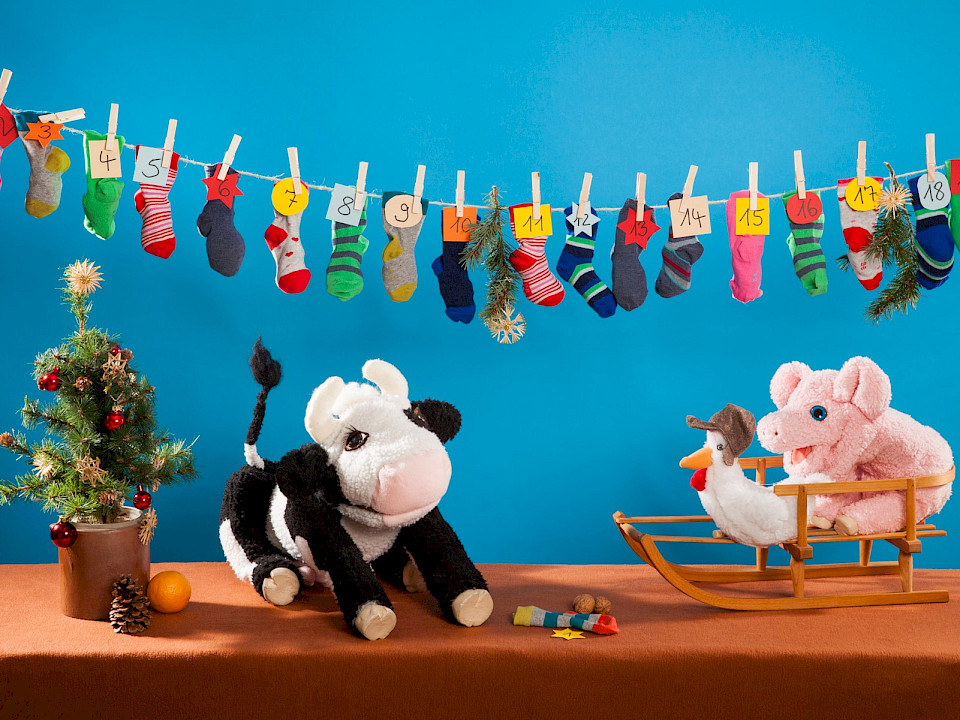 sagt die Bäuerin, und hängt ihrer Kuh einen Adventskalender in den Stall. 24 Socken - 24 Tage bis zum Fest.