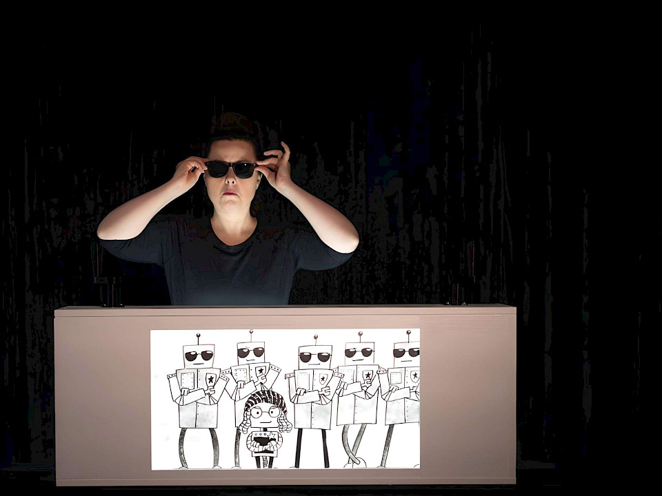 Wie schon die beiden ersten Trilogieteile zeichnet sich auch dieser dritte Teil durch das enge Zusammenspiel von analogem Figurentheater und digitalen Elementen aus. Das vollständig analoge Theaterformat Crankie wird gezielt genutzt, um damit in Stinas Welt, die Welt von Robocity, einzutauchen. Hierbei treffen die handgemalten Bilder der Crankie-Bildrolle auf digitale Videoprojektionen und kleine, handgemachte Animationssequenzen. Digital am PC entworfene Figuren treten dank 3D-Druck ganz analog auf der Bühne auf, und nerdige Requisiten auf Arduino-Basis runden das Theaterstück ab.