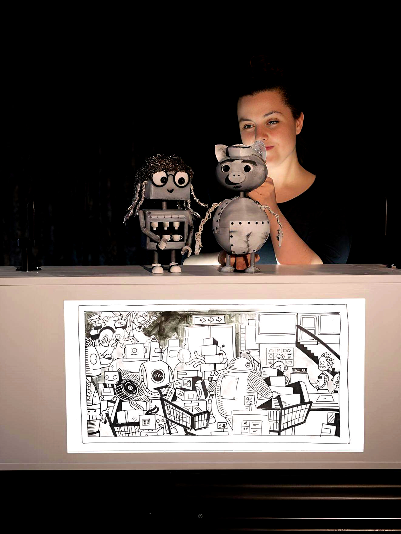 Es ist hilfreich, wenn sich der Spielort abdunkeln lässt, zum Beispiel durch Vorhänge. Ein vollständig schwarzer Theaterraum ist jedoch nicht zwingend erforderlich, da das Stück bewusst für den mobilen Einsatz auch an Nicht-Theaterorten konzipiert wurde.