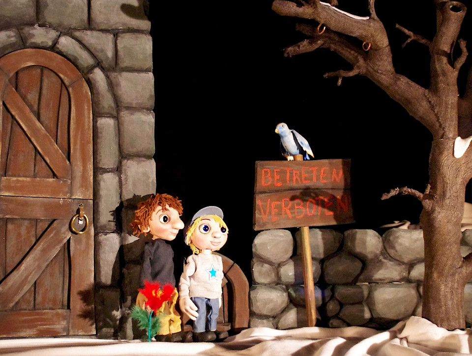 Was dann geschieht ist bekannt-der Riese wirft die Kinder hinaus und zieht eine hohe Mauer um seinen schönen Garten. Daraufhin wird es dort nie wieder Frühling und es herrscht ewiger Winter. Der selbstsüchtige Riese lebt einsam vor sich hin. Nur der kleine Willi liebt den Garten so sehr dass er sich trotz der Drohungen des Riesen noch einmal dorthin traut und es kommt zu einer Begegnung zwischen den Beiden. Neben der Wandlung des einsamen, egoistischen aber unglücklichen Riesen zum Menschenfreund und Spielgefährten geht es in dieser Inszenierung um die Themen Freundschaft, Zusammenhalt, Mut und Hoffnung.