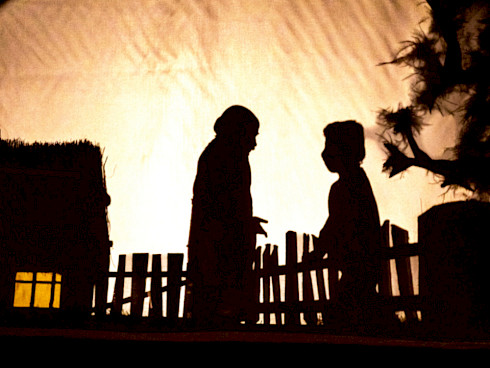 In Peter und der Wolf verbinden sich Figuren- und Schattentheater auf außergewöhnliche Weise. Die Szenerie und Figuren sind für das Publikum sichtbar und verwandeln sich erst zusammen mit dem Licht in eindrucksvolle Schattenwelten. Das Licht wird mit der Hand geführt und lässt das Schattentheater dynamisch, ja fast filmisch werden.
