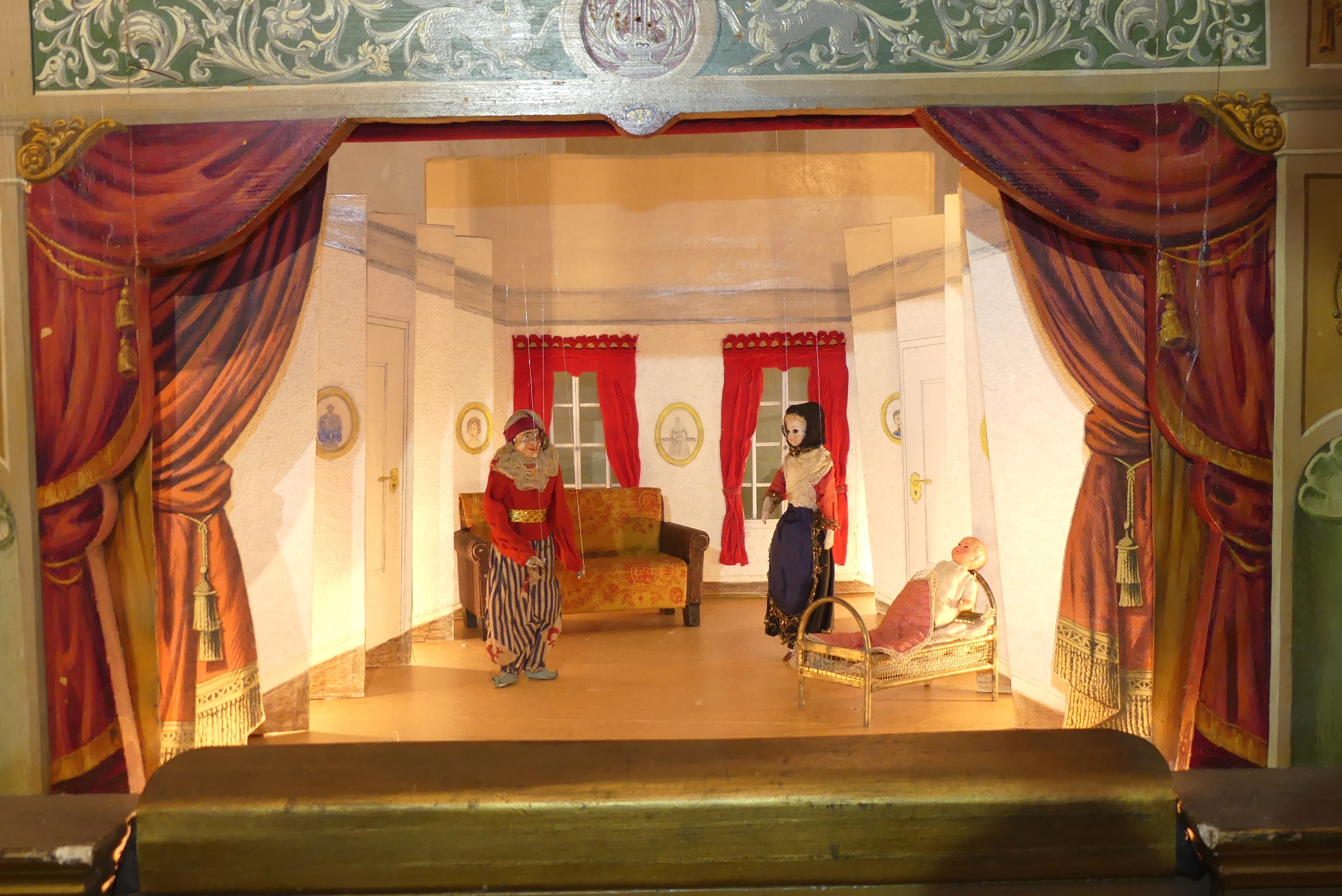 Es handelt sich um ein kleines Marionettentheater, im süddeutschen Raum auch als Dockenkomödie (Docke = Puppe; süddt.) bekannt, wie es in der Mitte des 19. Jahrhunderts unter anderem auch in der Region Ulm (Ulm a.d. Donau, Baden-Württemberg) verbreitet war: Entweder in öffentlichen Aufführungen z.B. anläßlich von Markttagen, oder in gut situierten Bürgerhäusern zur Unterhaltung im Familien- und Freundeskreis.