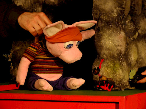 Die drei kleinen Schweinchen werden beim blinde Kuh spielen verblitzt,