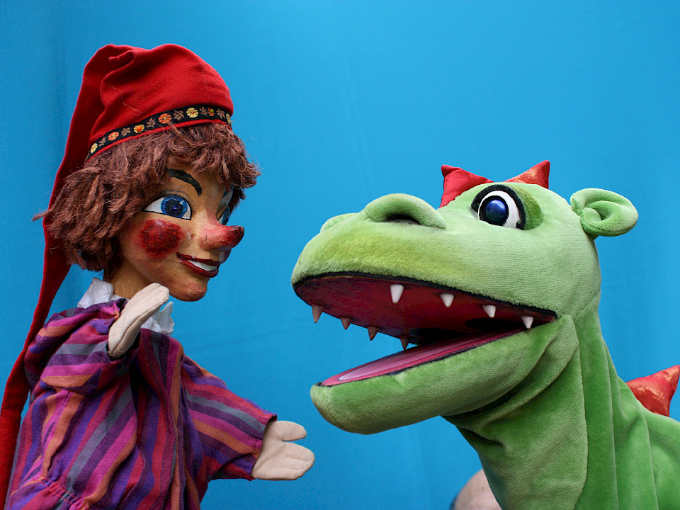 So bekommt die Prinzessin den Schönheitsstrunk, während die Hexe in ewigen Schlaf verfällt. Und dann kommt es natürlich zwischen Kasper und Teufel zu einem Kampf, wobei Kasper mit seiner Pritsche dem Bösewicht ganz schön zusetzt. Trotzdem scheint der als Sieger hervorzugehen! Doch im letzten Moment taucht der Drache auf, packt den Teufel und schleppt ihn davon.
