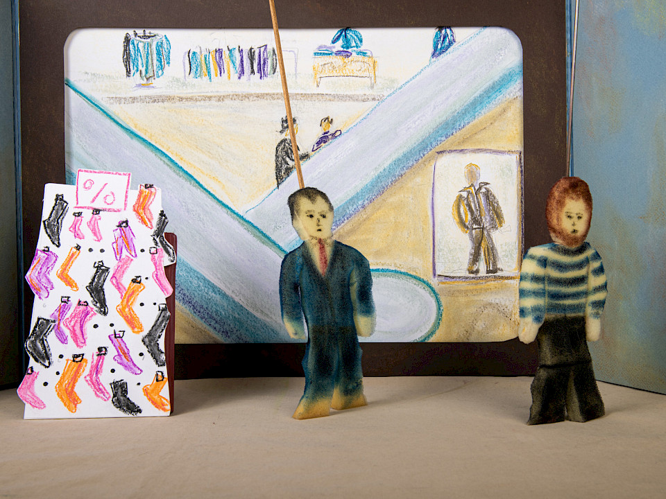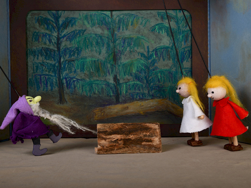 Vor einem ca. 50 cm x 35 cm großen Rahmen mit wechselnden Bilder agieren kleine Stabfiguren. Durch das Zusammenspiel von Erzählerin, Bildern und Puppenspiel entsteht ein abwechslungsreiches Theatererlebnis für kleine Gruppen.