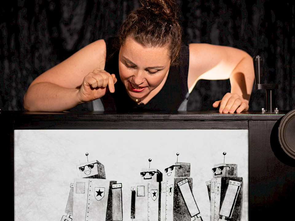 „Stina und das kleine grüne Alien“ ist ein spannender Roboterkrimi im Crankie-Format – für Kinder ab 6 Jahren sowie Erwachsene